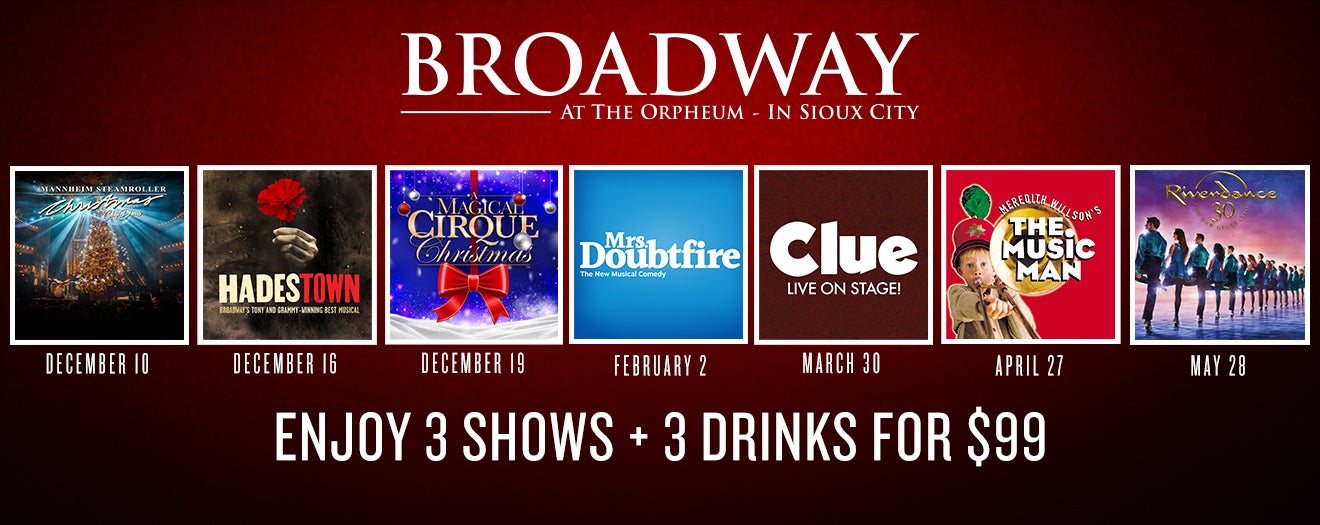 Choose your favorite 3 shows (of the offered Broadway titles) + one drink ticket for each show, all for just $99!